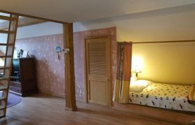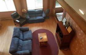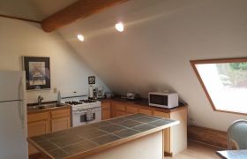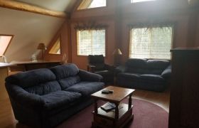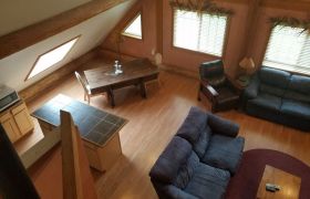 The bedroom loft overlooks the living room and features beautiful mission style furniture. When your day is done, the queen size bed envelops your body into a heavenly white goose down feather bed. On the main floor, there are 2 built-in cozy bunker/dormer beds (full) with curtains that draw closed for privacy.